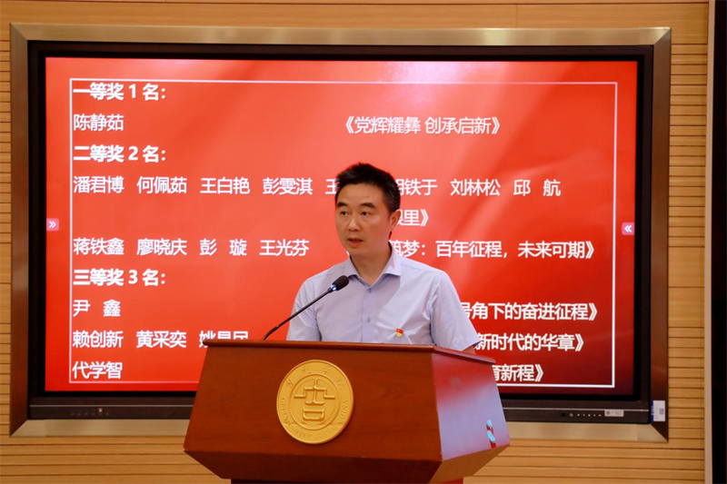 大会同时表彰了在理论宣讲领域崭露头角的优秀师生。校党委委员、校长助理张泽明同志宣读了《关于吉利学院举行“四川省第三届基层理论宣讲大赛活动”选拔赛评选结果的通报》。一批在选拔赛中凭借扎实的理论功底、生动的表达能力和创新的宣讲形式脱颖而出的个人和团队受到表彰,展现了吉利学院师生深入学习研究、积极传播党的创新理论的良好风貌和扎实成果。校党委委员、学生工作部部长武从罗为获奖代表颁奖。