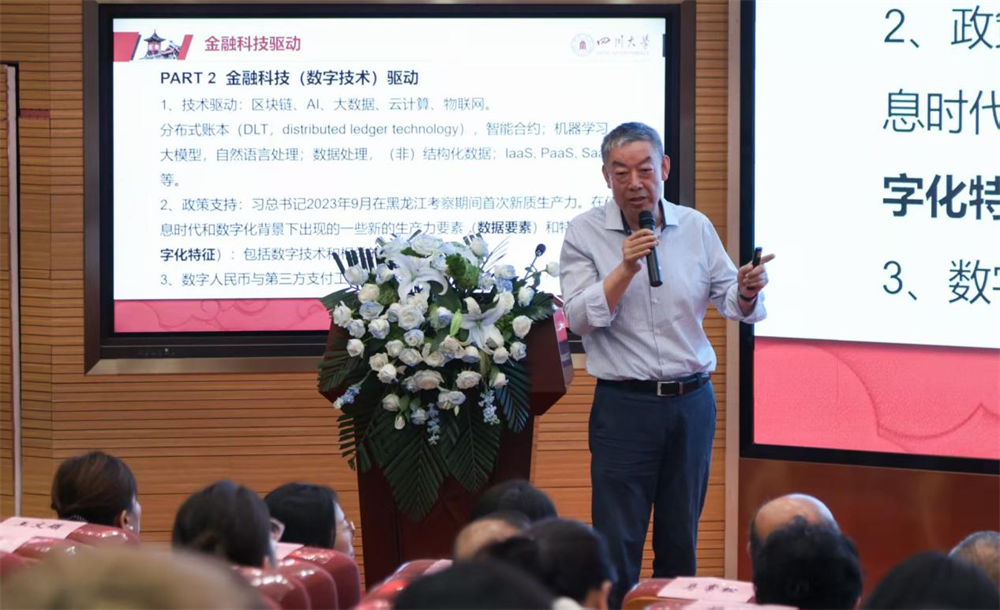 四川大学金融学院教授、博士生导师马德功以《金融科技赋能数字人民币:逻辑与路径》为题作主旨报告。他从数字化与数字货币的基本概念出发,系统解析了数字人民币的发展现状、技术赋能机制及未来演进路径。马教授指出,数字人民币具有安全性、政策性、匿名性、可控性、普惠性与全球化潜力,其发展离不开区块链、大数据、人工智能和云计算等核心技术的有力支撑。