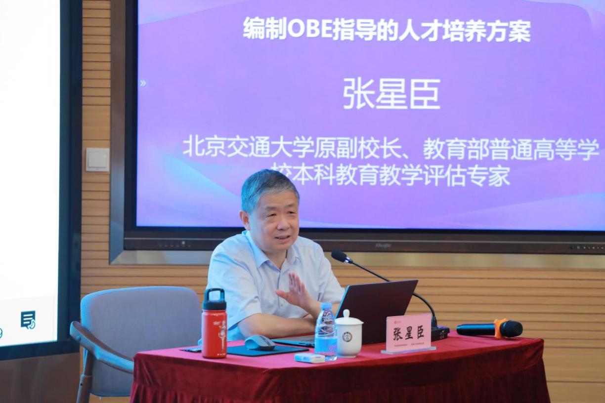 专题讲座中,北京交通大学原副校长、教育部本科教学评估专家张星臣教授以《基于OBE理念的专业培养体系设计与建设》为题作专题报告。他系统阐述了OBE的核心理念与专业认证逻辑,结合案例深入分析了传统“输入式”与OBE“输出式”人才培养模式的差异,强调应通过“反向设计、正向实施”构建闭环,确保专业培养目标对接社会需求与学生发展。