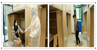 为提高疫情防控应急事件处置能力,熟悉学生开学前的疫情防控工作流程,完善各项准备工作。9月16日上午,吉利学院成都校区组织开展了疫情防控工作应急处置演练,演练由“防疫办”领导任总指挥,学工部、保卫部负责人现场指挥,学校疫情防控办公室全体成员,相关部门、各学院领导及工作人员参加了演练。演练由辅导员饰演学生模拟入校报到、进门登记、体温检测异常、在教室学习发现身体不适、在宿舍休息时发现发烧、错峰就餐等场景,并针对发现体温异常时的应急处置重点环节进行了模拟实战。