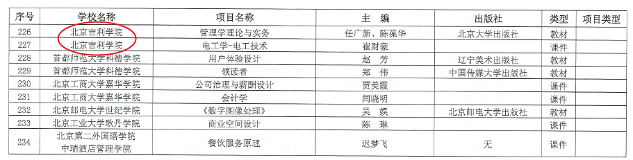 北京吉利学院 荣获两项2020年北京市优秀本科教材课件