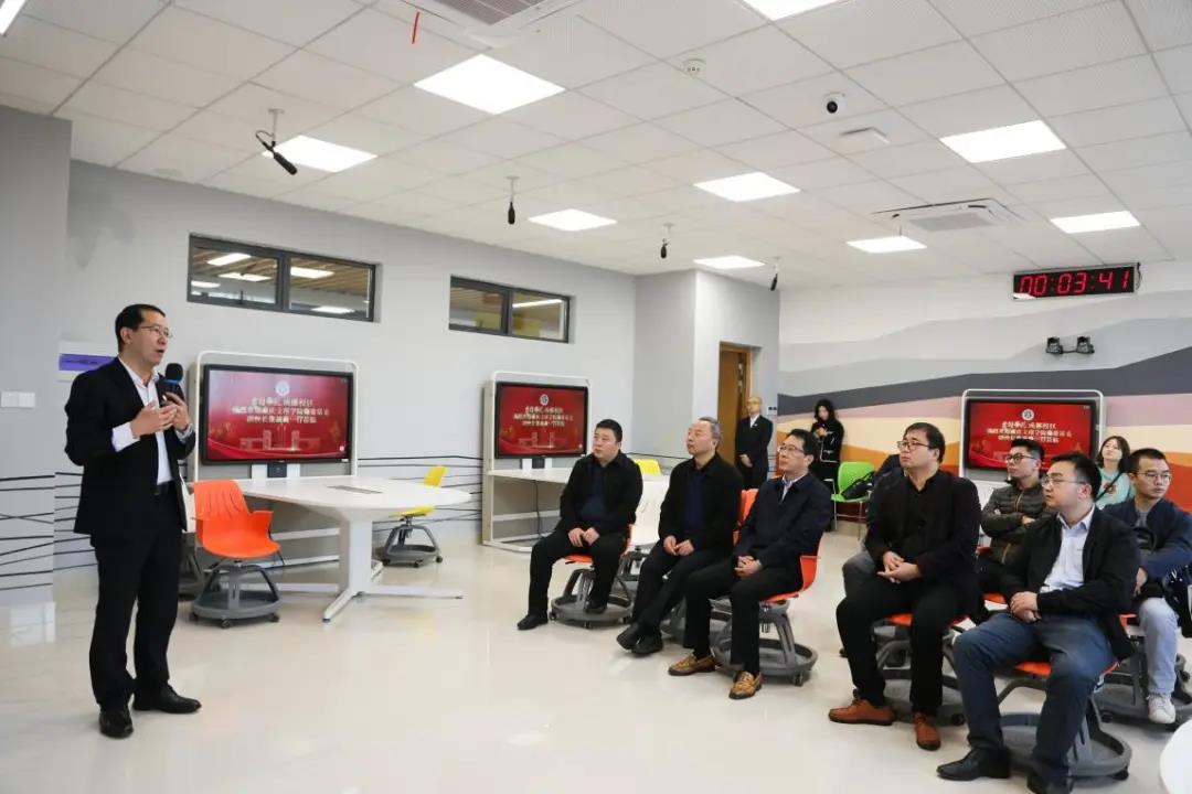 漆校长一行实地参观了吉利学院的智慧教学环境,详细了解了吉利学院关于教育教学信息化和“智慧教室”建设及应用的情况。来访老师们深入吉利学院课堂,现场观摩了智慧教学课堂,体验了互动类沉浸式教学模式。