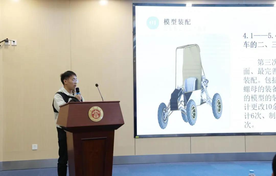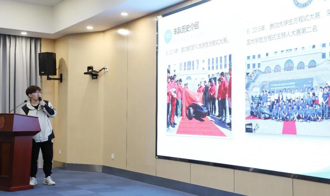 吉利星车队队长温如心和副队长温强同学分别汇报了吉利星车队Baja赛车设计及制作过程和2020赛季基本情况及车队建队历史。