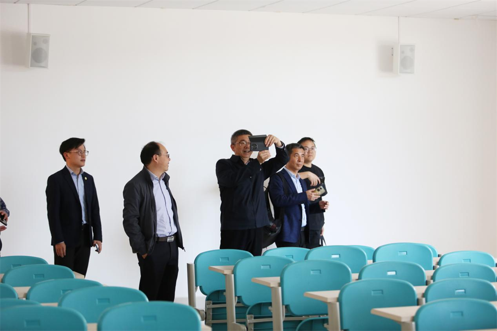 会前,黄江昆一行实地参观了学校教学楼、图书馆、汽车工程实验实训中心、学生生活组团等地,并就学校的整体规划设计、建设进展和功能分区等方面进行了深入了解和交流。