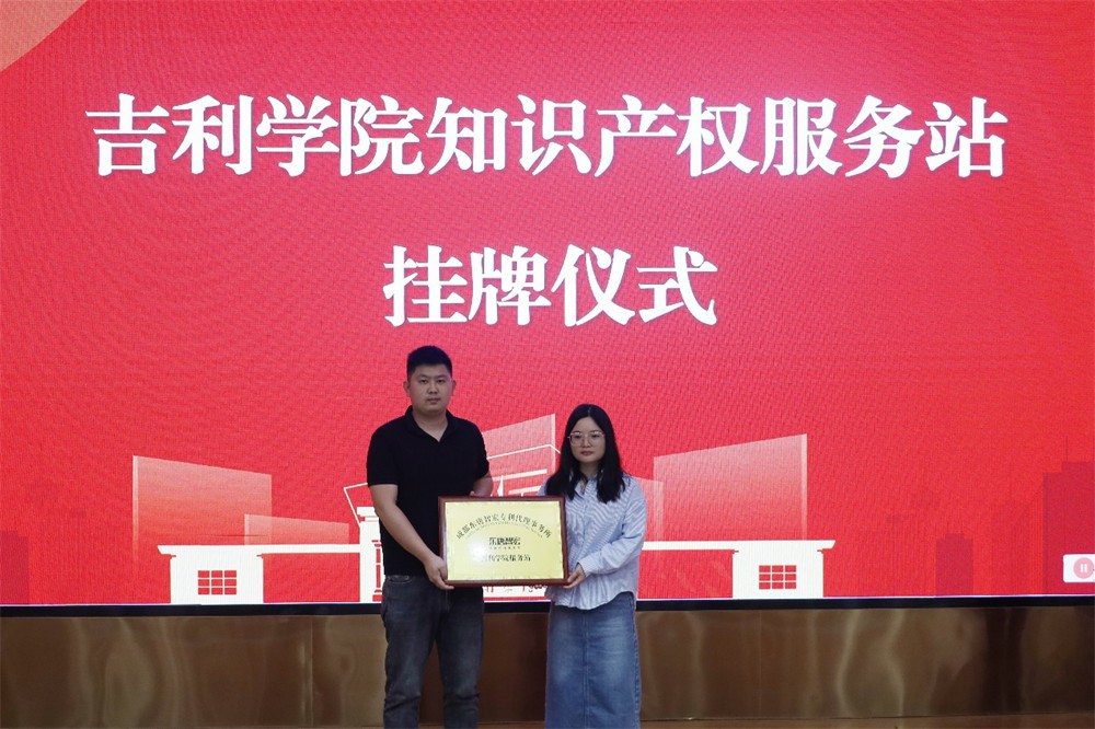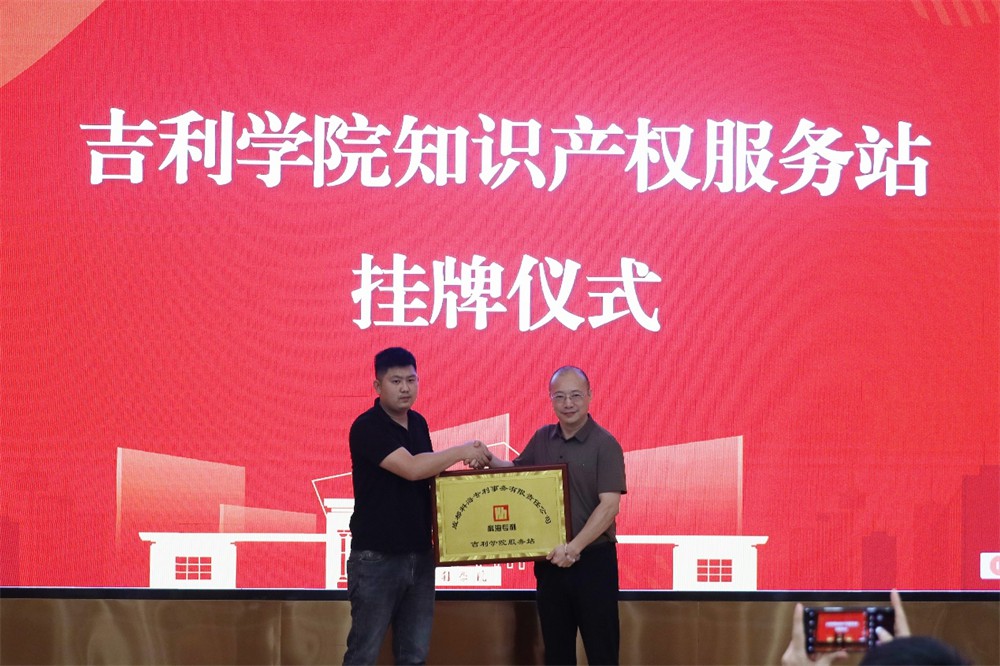 校地合作处处长助理李徐超为吉利学院知识产权服务站挂牌