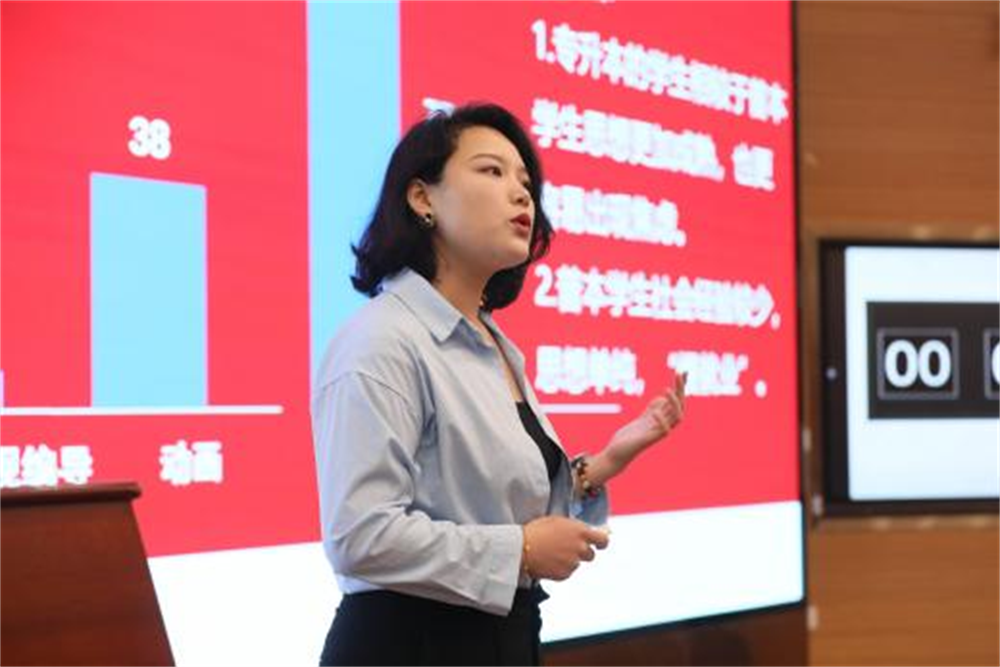 经各学院选拔推荐和校半决赛,共有9位老师进入决赛。决赛现场,辅导员们围绕学生思想政治教育、安全教育、班团干部队伍建设、第二课堂活动开展、学风建设、心理危机、就业指导与服务和寝室管理等内容,结合工作实际,分享了学生管理工作思路、措施和成效。他们通过讲述自己工作中的点滴故事与心得体会,充分展示了辅导员良好的专业素养和精神风貌。