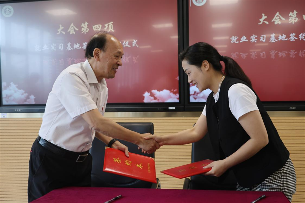 侯乐荣院长与企业代表签订了实习就业协议,并与招生就业处郭斌处长共同6家优质实习就业基地授牌。