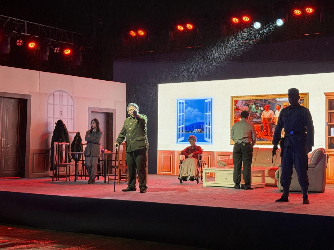 《父辈的旗帜》:历史回响与信仰的当代对话。舞台之上,年夜饭的温馨与代际冲突的激烈交织碰撞。当年轻时代的何光明在“戏中戏”的幻觉场景中重现革命片段,那股跨越时空的理想主义之光,深深灼烧着当代观众的内心。戏舞台上,学生们通过对性格迥异人物的精准塑造,将“父辈的理想”与“子代的现实”核心矛盾演绎得淋漓尽致。这不仅是一次对表演深度的挑战,更是一堂生动的思政课,让毕业生在奔赴社会前,深刻理解“坚守初心、直面责任”的时代内涵。