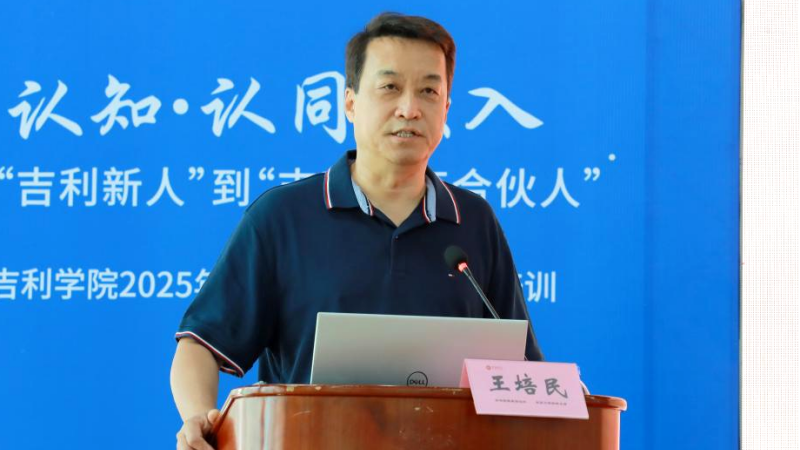 在培训专题讲座中,党委书记王培民以“一路走来”的校史故事为轴系统梳理了学校的发展历程和文化底蕴。他强调,吉利学院的发展得益于“产教融合”的独特路径,更需要一支有理想信念、有道德情操、有扎实学识、有仁爱之心的教师队伍。他希望新教职工在工作中要实现“三个认同”:一是组织认同,要认同学校的发展愿景与管理制度,将个人成长与学校发展紧密结合,形成共同的奋斗目标与行动准则;二是文化认同,认同吉利文化内核,自觉践行校训精神,融入“企业办校、产教融合”的办学特色; 三是情感认同,形成对学校的归属感、荣誉感和共同体意识,愿意与学校同舟共济、共同成长,为吉利教育事业的持续发展贡献心力。