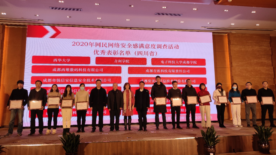 2021年01月17日吉利学院荣获“2020年网民网络安全感满意度调查活动(四川省)”优秀表彰单位