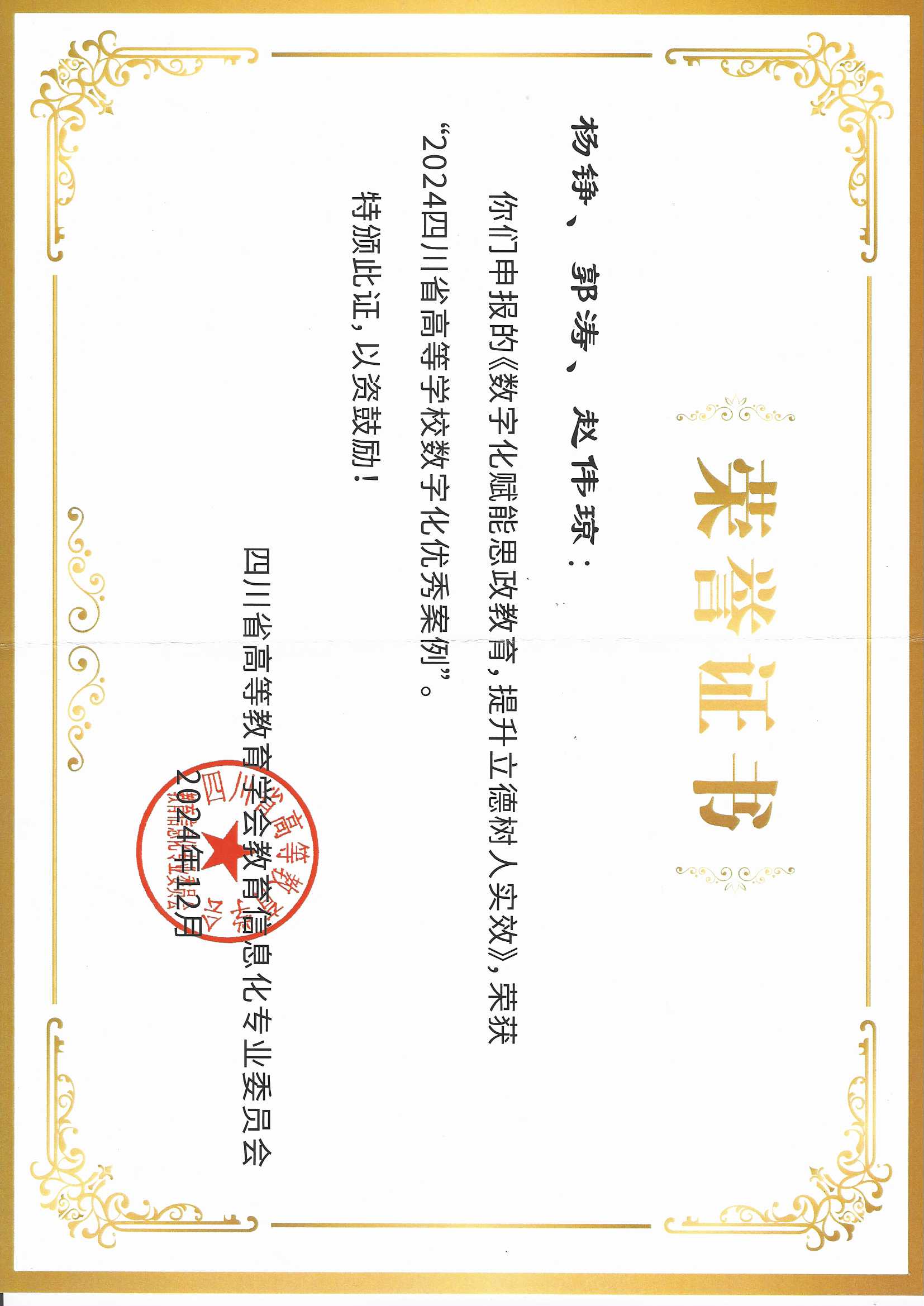 本网讯(特约记者 康林瑶 编辑 吴丽娟)近日,四川省高等教育学会教育信息化专业委员会公布了2024年四川省高等学校数字化优秀案例评选结果,全省共征集到案例139个,经专家评审遴选出36个优秀案例,我校《数字化赋能思政教育 提升立德树人实效》成功入选。