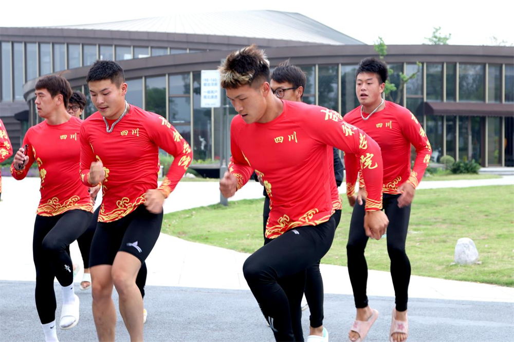 龙马湖上,红色龙舟劈波斩浪,鼓声、号子声、击水声交织成激昂的交响曲。年轻的面庞上汗水与湖水交融,眼中跳动着炽热的斗志。划手李林表示:“全运会是我们的梦想,我们会带着四川人的拼劲,划出最整齐的桨!”