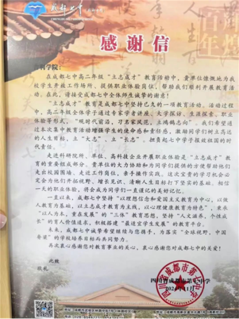 理论+实践+职业探索|成都七中高二学子来我校研学
